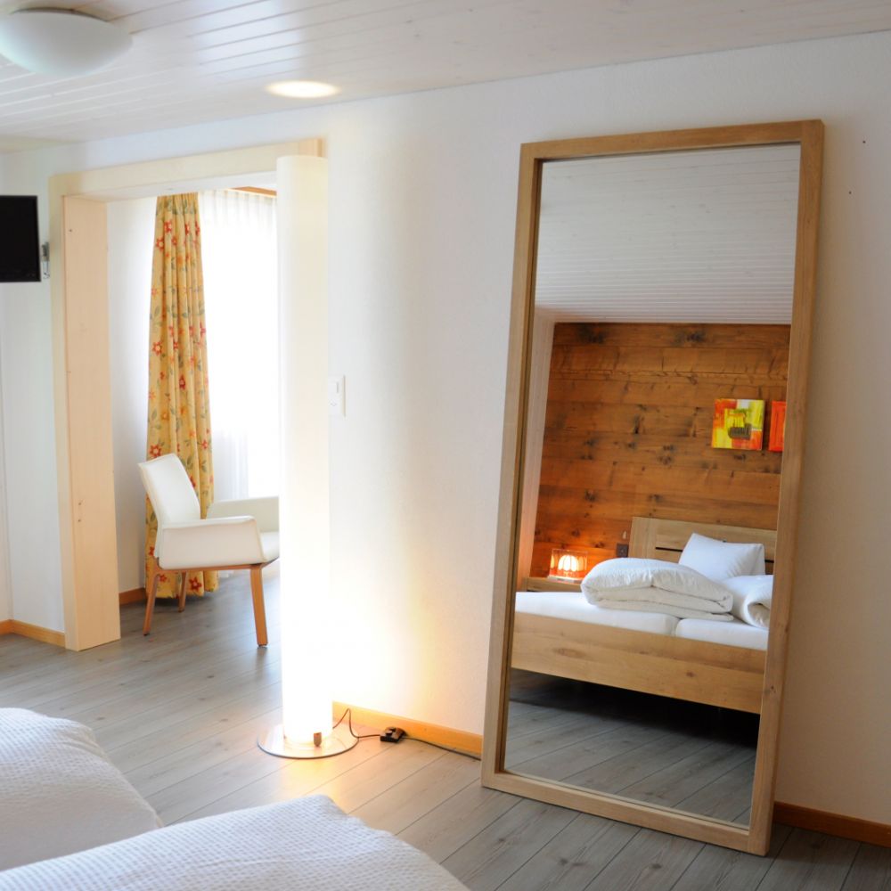 Alle unsere Doppelzimmer können auf Anfrage mit einem Babybett ausgestattet werden, einige bieten flexibel auch Platz für ein Zustellbett. Geniessen Sie familienfreundliche Glücksmomente...