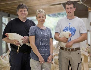 Silvio is the third generation to work at the Salzmann poultry farm, and if necessary, the other family members Rita (mother), Michael and Marco can always be counted on.
