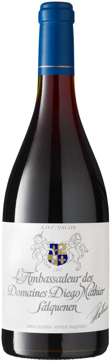 L'Ambassadeur des Domaines Diego Mathier rouge est incontestablement le vin phare du meilleur vigneron suisse de la décennie et la fierté de la famille Diego Mathier. Le palmarès de ce vin rouge monovariétal le distingue comme le pinot noir suisse et valaisan le plus réussi. Une année tardive et humide a caractérisé ce millésime avec une petite récolte en termes de quantité mais remarquable en termes de qualité. La couleur, un rouge rubis brillant, correspond à la réputation de notre ambassadeur. Le nez encore un peu réservé s'ouvre sur des notes fruitées qui sont bien accompagnées par l'élégance du vieillissement en barrique. En bouche, il a un caractère fort et beaucoup de structure, souligné par une acidité et une longueur fraîches.